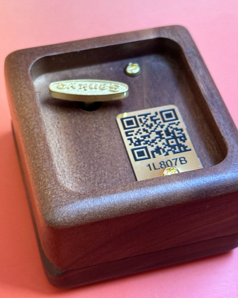 Enhance your gifting experience with our QR code plate on the music box.