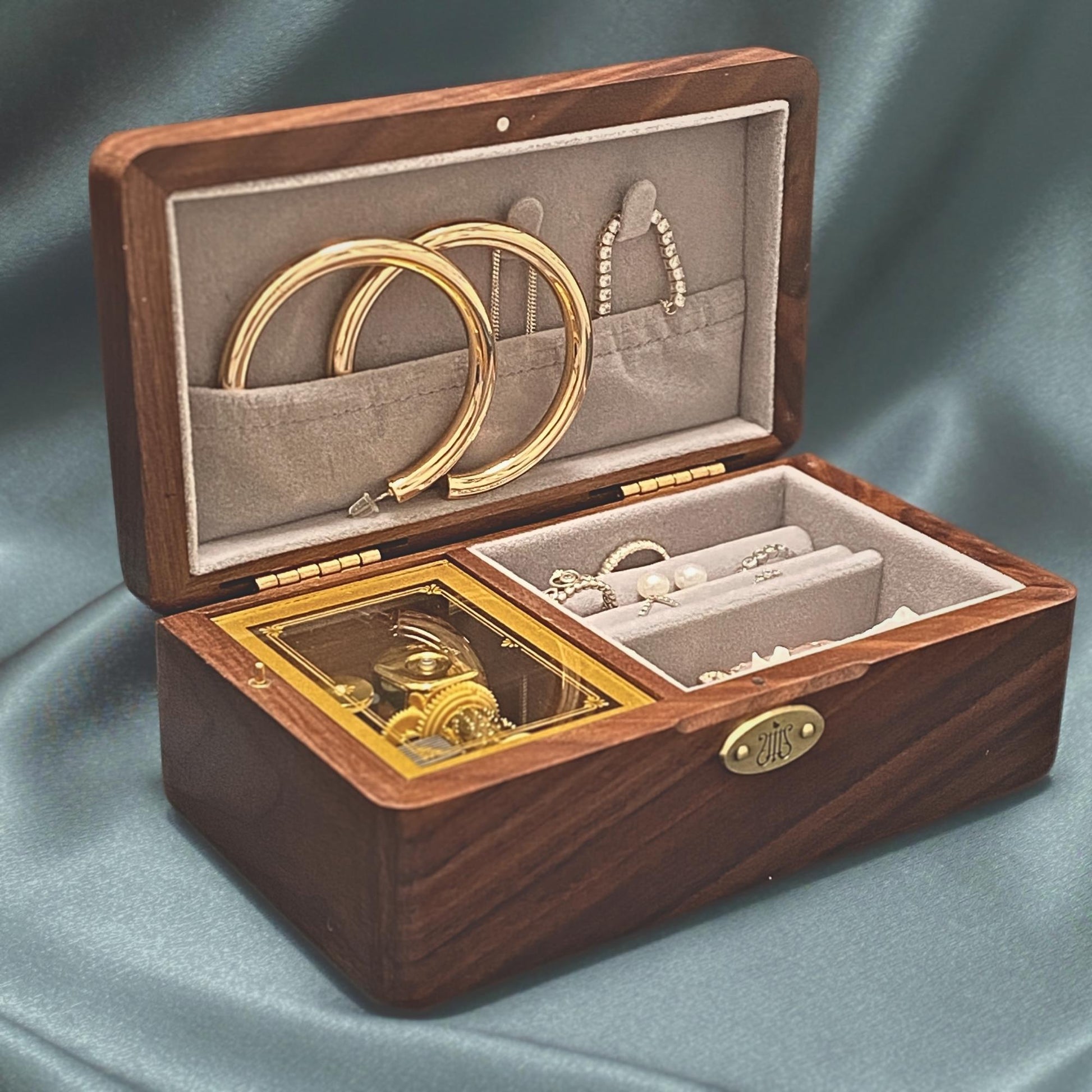 The biggest wooden music box in our collection, with multiple jewelry compartments. Starts playing when the lid is opened for that “Wow!” factor. Our Jewelry Music Box is the perfect combination of exquisite and versatile.